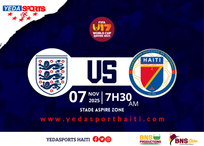 La sélection haïtienne U17 s’apprête à disputer son deuxième match de la Coupe du monde face à l’Angleterre, ce vendredi 7 novembre 2025 à 7h30 du matin, au stade Aspire Zone de Doha. Après une entrée en lice difficile, marquée par une défaite 4-1 contre l’Égypte, les jeunes Grenadiers devront faire preuve de caractère pour espérer se relancer dans la compétition.